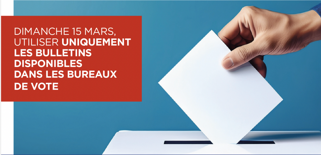 Pour que votre vote soit bien pris en compte, merci d’utiliser uniquement les bulletins corrigés, disponibles dans les bureaux de vote le 15 mars.